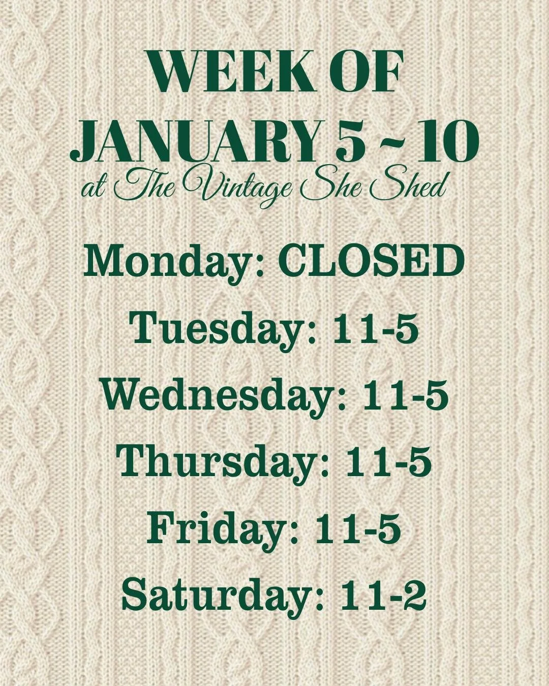 ***Winter Hours Vary***Weekly Hours Will Be Posted Every Sunday Night VINTAGE + NEW Home • Gifts • Boutique 663 Old Plantation DriveLynchburg, Virginia